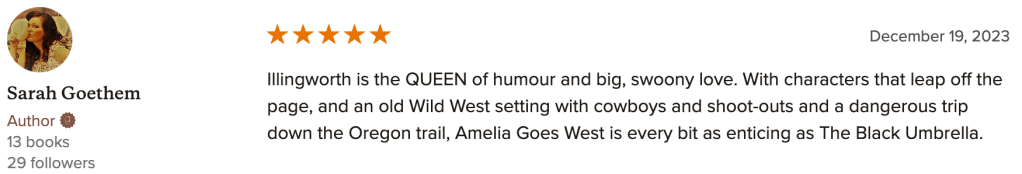 A companion to The Black Umbrella, Amelia Goes West is a time travel coming of age packed with laugh out loud humor, breathtaking adventure and big, swoony love.